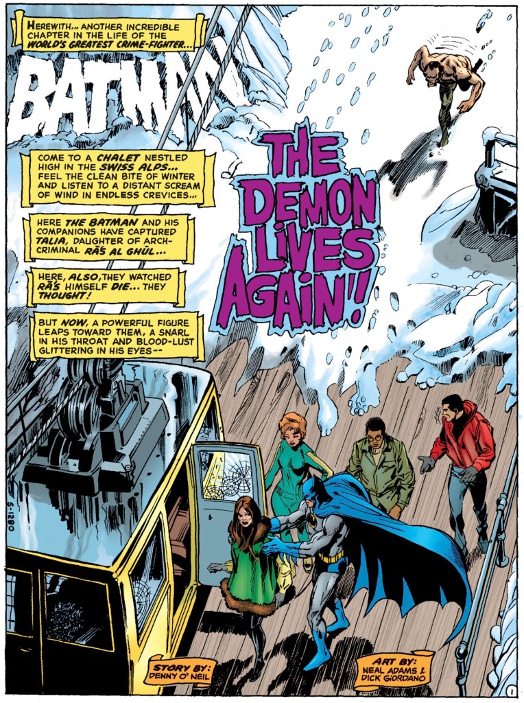 If the previous issue of Batman had felt like an awkward and only intermittently enjoyable mix of the innovative and the hackneyed, The Demon Lives Again works brilliantly well from beginning to end. In the invention of R’as al Ghul, who in this issue seems to grow from interesting protagonist to iconic arch-villain, O’Neil and Adams succeeded where so many have stumbled, namely, in the invention of an opposite number who bears comparison with the very best of Batman’s rogues gallery. The air of a big-budget screen thriller continues with a shift of locale from snow-capped mountains to a “fierce and merciless” desert, but unlike before, these cinematic backdrops feel key to the set-pieces that play out against them. The supporting cast, which had previously seemed irrelevant and unlikely, each have their moment too. All in all, the issue is every bit as much a triumph as its reputation would insist.