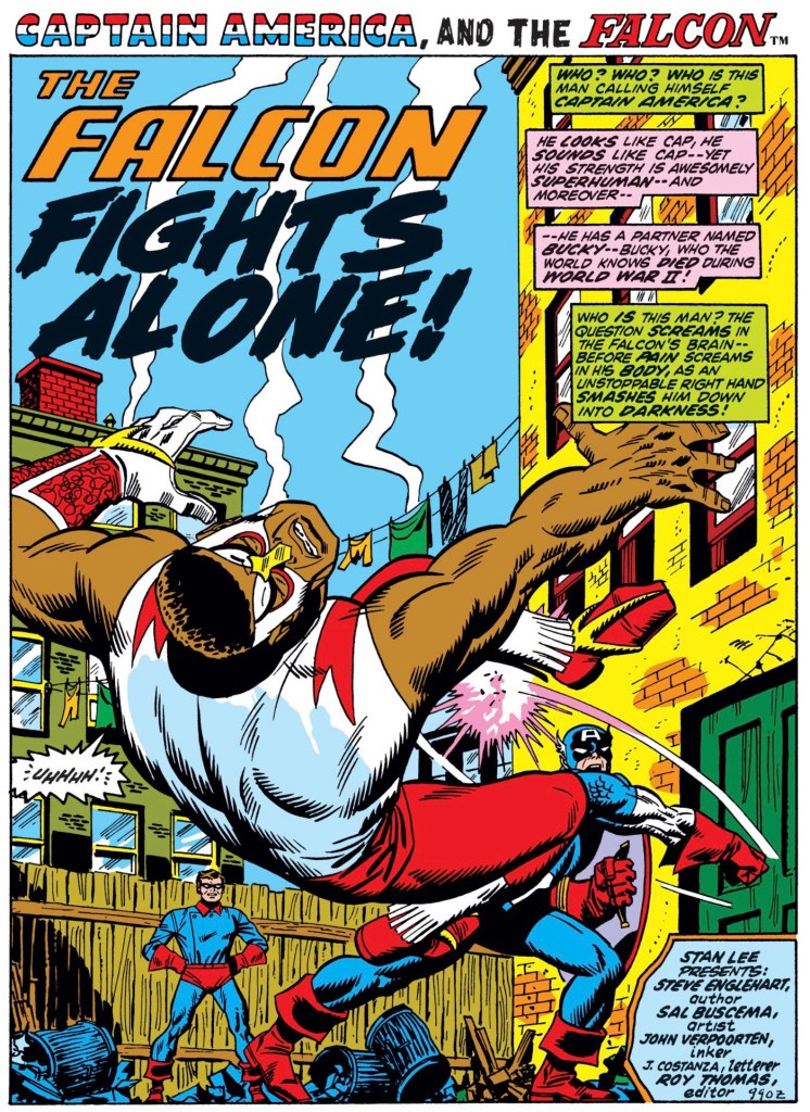 For the first time on his new stint on Captain America and The Falcon, Steve Englehart co-produced an issue that promised great things for the future. What had been perfectly adequate with speckles of promise became something far more substantial. With his collaborator Sal Buscema, whose presence Englehart loved for the artist’s crystal clear storytelling and fidelity to his plot’s details, the comic began to move on from tying up old plot-threads. (Those that lingered on were lent a deliberate purpose rather than being dismissed or ignored, which is always the sign of a careful and respectful franchise writer.) The promise of the previous issue’s conclusion, in which bizarre, red-baiting and self-evidently racist versions of Captain America and Bucky attacked The Falcon, was borne out in what was revealed to be the tale of the anti-Communist Cap who’d briefly appeared in a handful of 1950’s adventures. The playing out of continuity contradictions rarely make for interesting, let alone enthralling, reading. Yet Englehart and Buscema’s story used the corruption evident in Steve Roger’s McCarthy-era counterparts to open up a debate about what 1972’s Captain America actually stood for. It would a long-running theme in their stories which would take Rogers to the White House and a President who was as appalling as any super-villain faced in Cap’s own tales since the Red Skull.