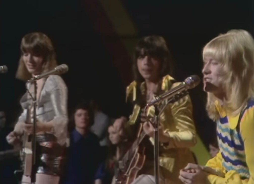 Perhaps one way to underscore how very different, how very shocking, the Bowie synthesis of sentiment, song, performance and costume was is to simply note who the other participants in that Top Of The Pops were. His individuality and outrageousness was in large part defined by their very lack of the same. So what did they look like? What were they singing about?
