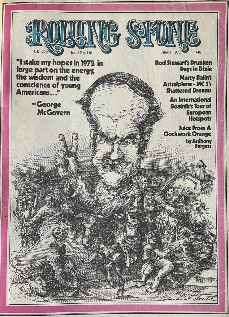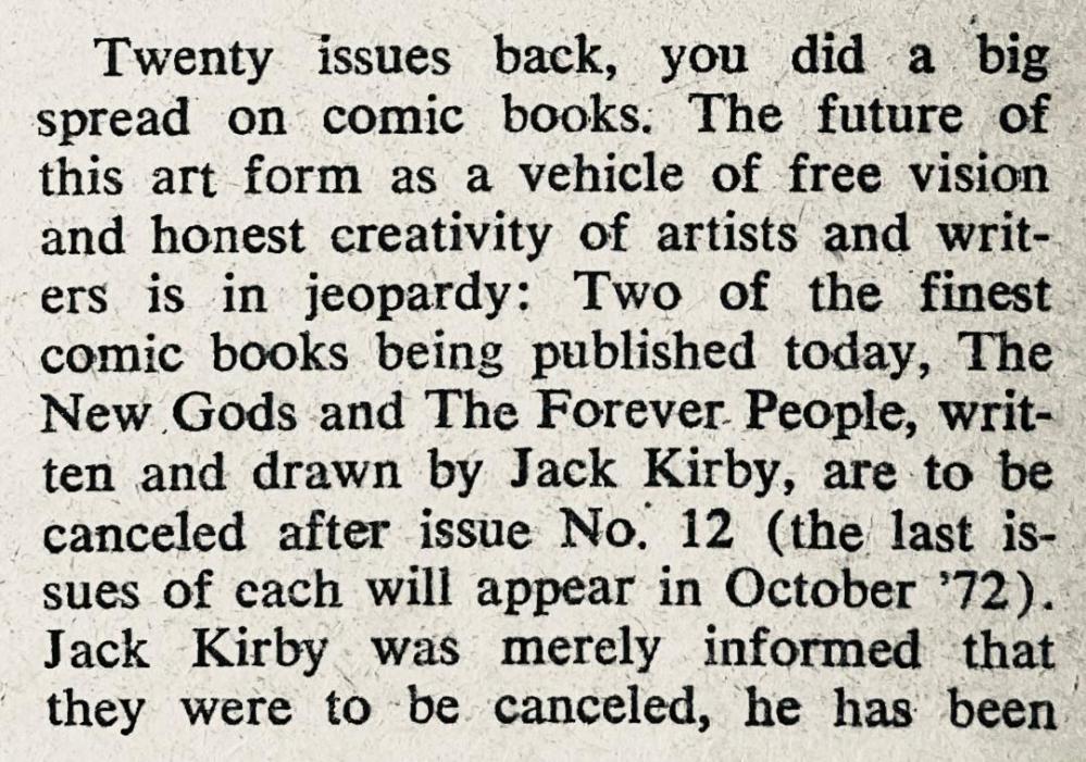 To trawl through the pages of the first of the UK’s two editions of Rolling Stone during June 1972 is to encounter a surprising degree of the fantastical. It begins with the Correspondence, Love Letters & Advice half-page, in which one Chris Kuchler of Los Angeles attempts to drum up for support for two of Jack Kirby’s recently-cancelled Fourth World titles at DC Comics: