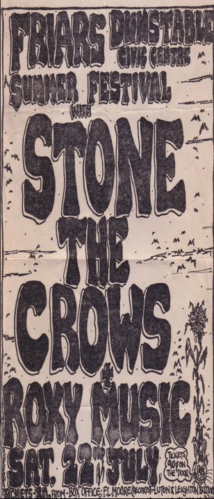 Saturday 22nd – Friars Summer Festival at the Queensway Civic Hall, Dunstable, Kent: Roxy Music supporting Stone The Crows