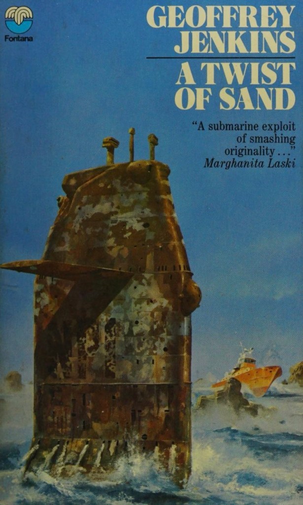Anyway, I don’t believe that the mass of readers in the period expected sci-fi covers to accurately represent the contents of the books they were wrapped around. In the case of Foss’ paintings, they were an event in themselves, and the sense of excitement, wonder, and awe that they transmitted was a signifier not of plot or character, but of genre. They were promises concerning what a sci-fi book might mean to the reader on a gloriously visceral level. There was even a strange feeling that each cover belonged to a common, shared universe regardless of the quite separate novels they were attached to. Was there some kind of uber-narrative running, unheralded, through each and every example of his art? It really could seem so, and this could appear to be true even when a Foss cover was wrapped around a non-sci-fi tale such as, to take but one example, Geoffrey Jenkins’ submarine actioneer A Twist Of Sand.