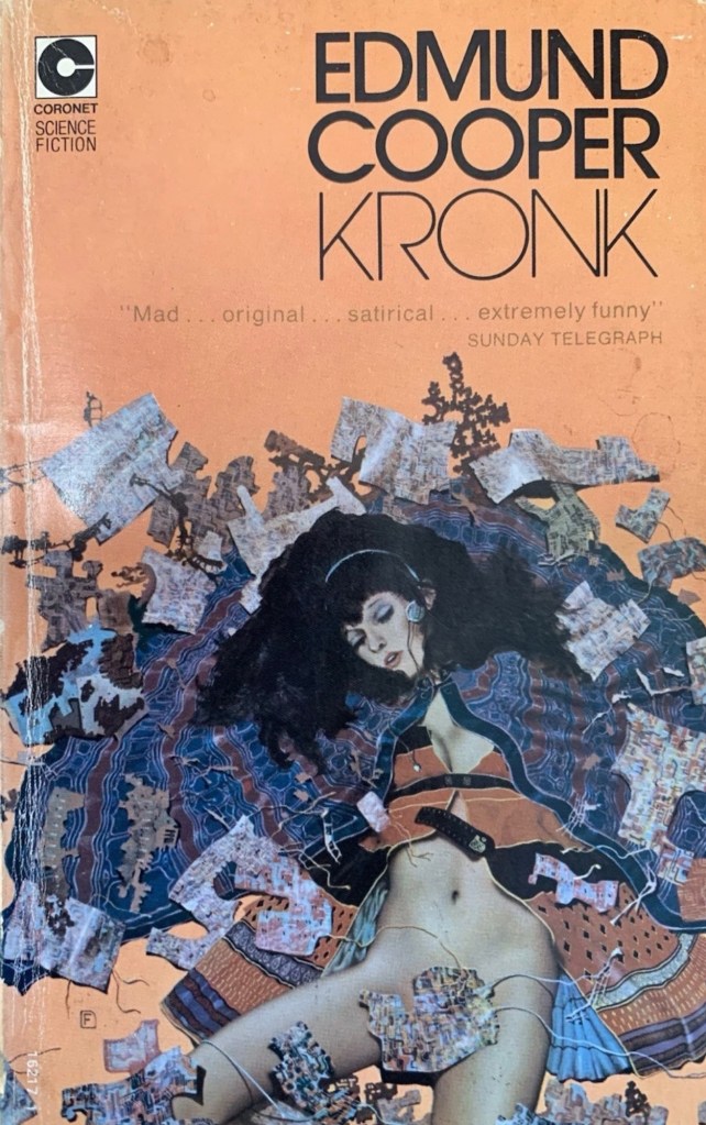 What follows is a selection of Foss’ covers from 1972 books. I’ve used the novels as they saw print rather than hoovering up pristine scans of Foss’ original, and typically quite marvellous, artwork. (I wholeheartedly recommend Hardware for an ample record of Foss’ originals.) We live in an era in which it’s possible to seek out many such glories, but in the 70s, Foss was known, largely, not by his name or his fabulous original canvases, but by the constraints of standard-sized paperback covers that were hemmed in by publisher’s insignias, titles, pull quotes and the likes. Similarly, copies of his covers seen in the wild in 1972 were often markedly well-thumbed, as tended to happen to books stuffed into wire racks and piled up in secondhand shops. What’s below isn’t Foss in all his shiny airbrushed glory then, but rather Foss as might have been encountered in a jumble sale of the period. (And memory insists his art would nearly always be seen there!)