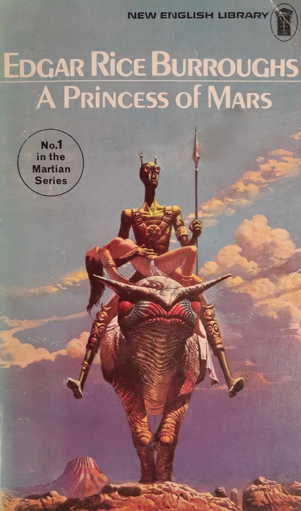 Bruce Pennington’s cover for Edgar Rice Burrough’s A Princess Of Mars, originally published 1917, first NEL edition with this painting 1969. It was apparently the first time that the novel had been issued without John Carter appearing on its cover.